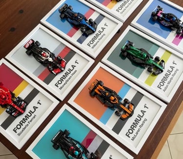 A 3D F1 Lego Frame is a precision engineered collectable Lego F1 cars visually striking, organized manner.